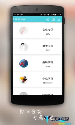 3. 贴心分类功能齐全,设有女生、男生、个性、趣味、经典和英文6大分类,能快速找到适合自己的字体,满足多样需求。