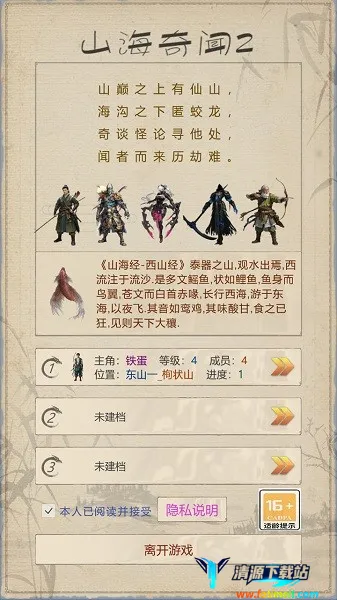 想玩《山海奇闻2》却不知咋上手?别愁啦!这攻略来帮你。先勾选同意隐私说明,点首个存档就能进游戏,进度都存对应存档里。接着会看到基于山海经改编的背景故事,点开启奇幻冒险就正式开玩啦。进入剧情环节,跟着指引熟悉游戏内容,慢慢探索正确玩法。战斗是极简页面设计,不用复杂操作,属性达标就能自动战斗获胜。这游戏以山海经为背景,玩法多样,能收集异兽、修炼秘籍、创建门派。画面是唯美的国风,文字优美有诗意,选择还影响剧情走向。在这游戏里,你能自由探索山海世界,降服妖魔,体验独特乐趣,赶紧来试试吧!