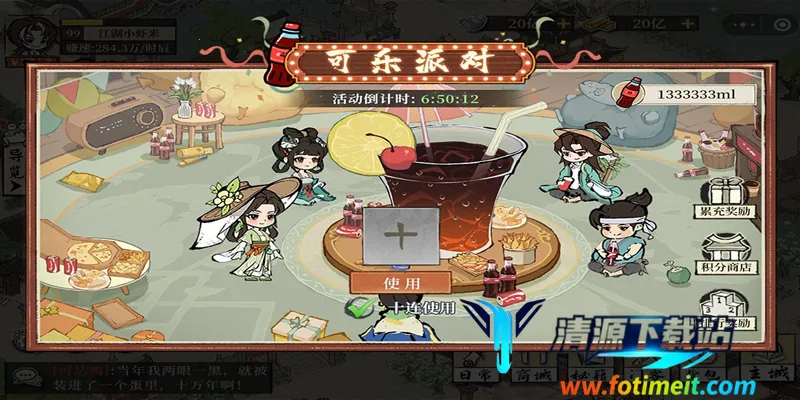 游戏特色满满,有跨时空经营模式,古今元素融合,解锁多样店铺,还有新菜谱研发系统。亮点也不少,能遇见李白、武则天等历史人物来提升店铺知名度,达到一定等级会有各种挑战。而且它水墨古风画风,氛围古朴雅致,还定期推新活动。