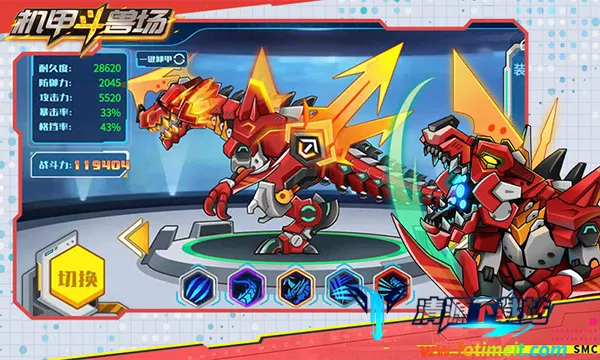 1、超多种类机甲:游戏中有三角暴龙、装甲暴龙、金毛狮王、机械翼龙、曙光女神以及六道赤龙等一系列独特机甲供玩家选择,每款机甲都有独特能力与属性。