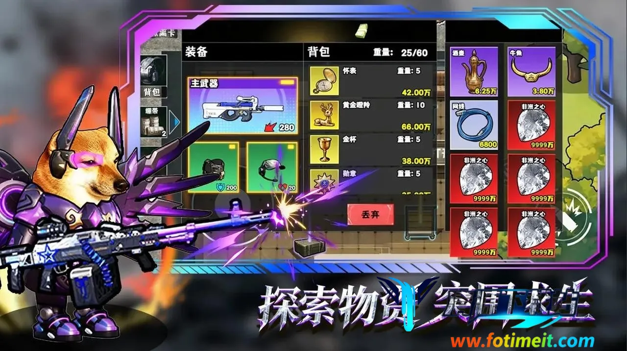《修勾逃生巨人危机》是一款超有趣的生存射击撤离类游戏。它玩法独特,类似热门的三角洲行动。你能操控可爱修勾开启专属冒险,地图藏着大量宝箱,里面物品价值不同,极品道具价值可达百万。收集高价值物品后,规划安全撤离方案才能带出。游戏有丰富武器品类,花对应货币就能解锁。还有亮眼服饰造型,能玩趣味小游戏。