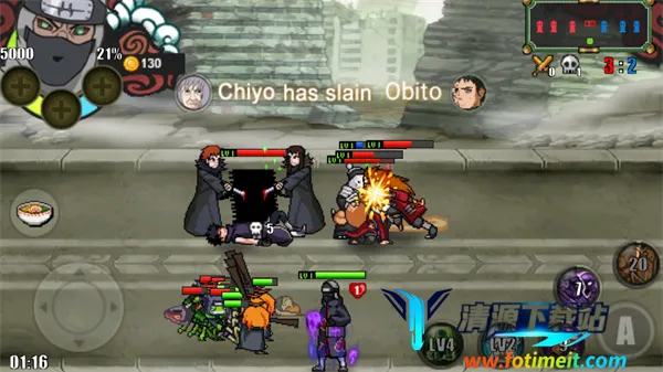 4. 经典角色齐聚:数十个不同的经典忍者角色,技能完美还原,能让玩家操控熟悉的角色开启战斗,展示自身能力,享受忍者狂热战斗。