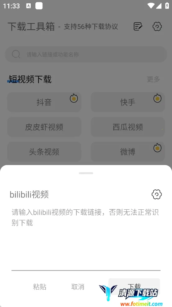 下载工具箱是多功能下载软件,集多平台资源高速下载、加速、搜索整合等功能于一身。支持56种协议,能解析多平台短视频,还有二维码、查询、计算转换、文件管理等实用功能,操作简单,体验便捷。