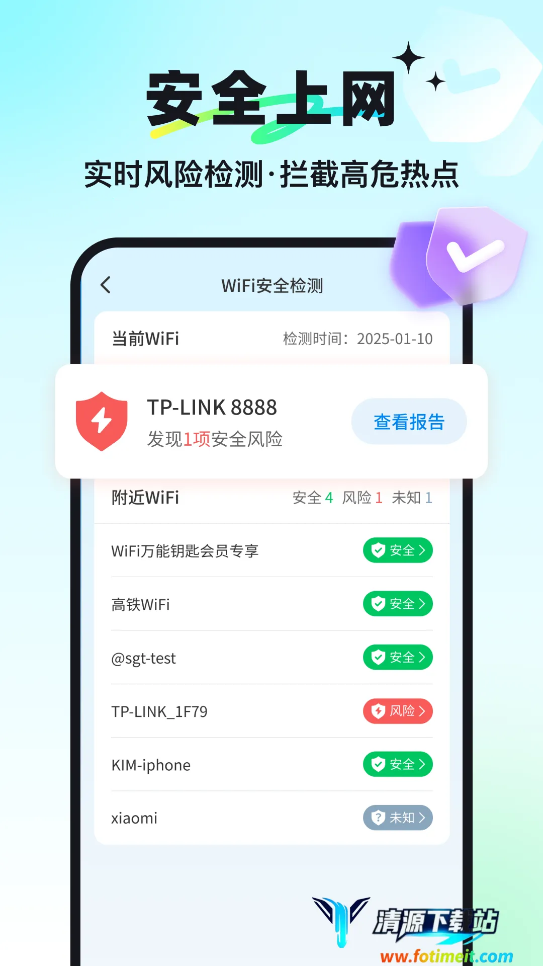 万能钥匙2025最新版是专注WIFI网络连接、NFC标签管理等功能的应用软件。有先进辅助工具,满足多场景需求,能一键连网、保护隐私。其热点数据丰富,具备一键省电等特色,网络管理专业强大,助用户畅享稳定网络。