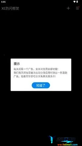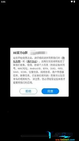 1、下载安装XE防闪框架app后,点击同意权限即可