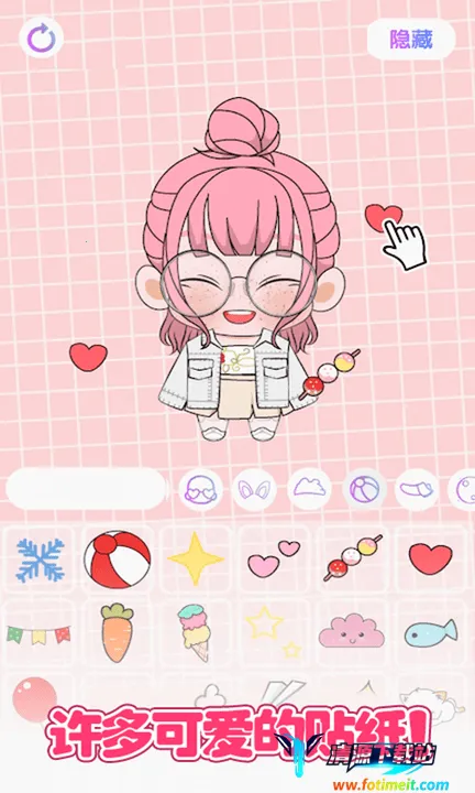 3. 自由搭配:有多种漂亮包包、不同类型发型,提供丰富多样的服饰和配饰,还有多种风格滤镜和有趣贴纸,可自由选择搭配,彰显角色个性,发挥超强审美能力。