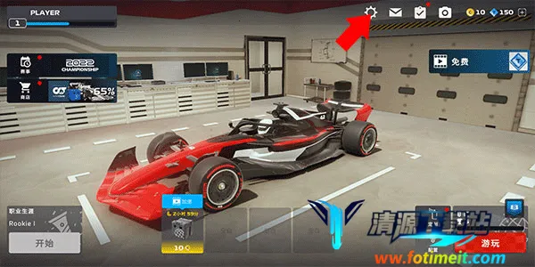 1、打开F1移动赛车手游,进入游戏后点击右上角设置按钮;