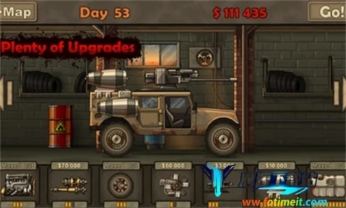玩这游戏超解压,能满足你在僵尸世界驰骋的想法。通过撞死僵尸获得金币,升级战车后属性加成更多,还能配备更强大武器。合理搭配地形运用战车,不断解锁更多关卡。快来试试,感受驾驶战车撞僵尸的刺激吧!