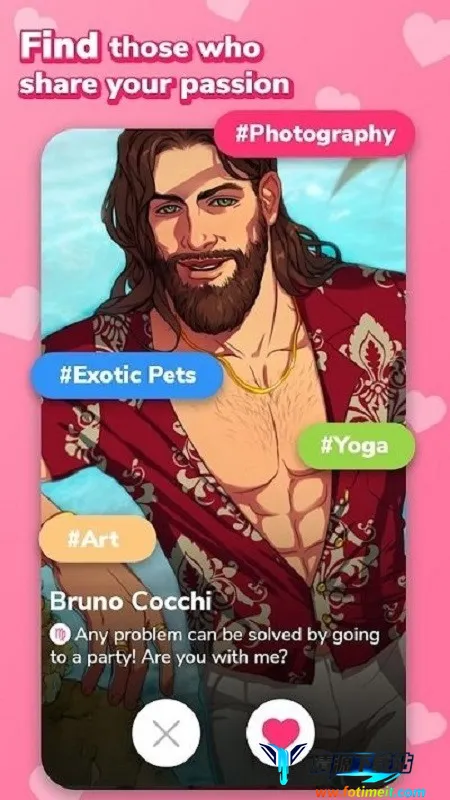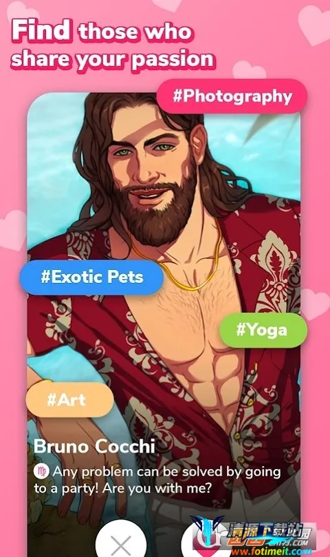 想知道爱情秘诀是什么吗?来玩这款以模拟约会为玩法的趣味游戏吧!它有全新故事剧情和逼真约会场景,能让你感受纯真恋爱,少女心爆棚。游戏里有多种人物角色关系和颇具艺术风格的交友方式,是精美的二次元互动养成题材。玩法很简单,通过滑动匹配,和众多角色约会。不同角色有着不同背景和故事,浪漫、冒险或戏剧等情节等你来探索。你能与他们建立联系,享受自拍照,用表情符号反应并做出影响故事走向的选择。还能与喜欢的人配对,通过有趣聊天和对话了解虚拟恋人,揭露他们的秘密。在这里,你就是主人公和爱人,能扮演不同身份交流,将爱恨情仇展现得淋漓尽致。既能享受浪漫,又能学会用艺术方式交流,保持持久关系,拉近彼此距离,产生好感,快来体验吧!