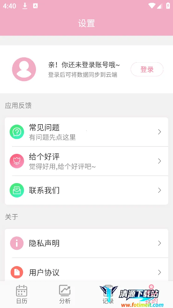 1. 数据安全有保障:支持数据导出和备份,可将记录保存在云端,不用担心数据丢失,让您的经期记录安心无忧。