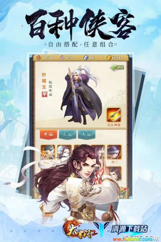 2. 侠客众多,自由养成:几百名知名侠客齐聚,任你招募自由搭配。能达成双剑合璧,还可获取侠客内力传功,自由养成弟子掌控属性。