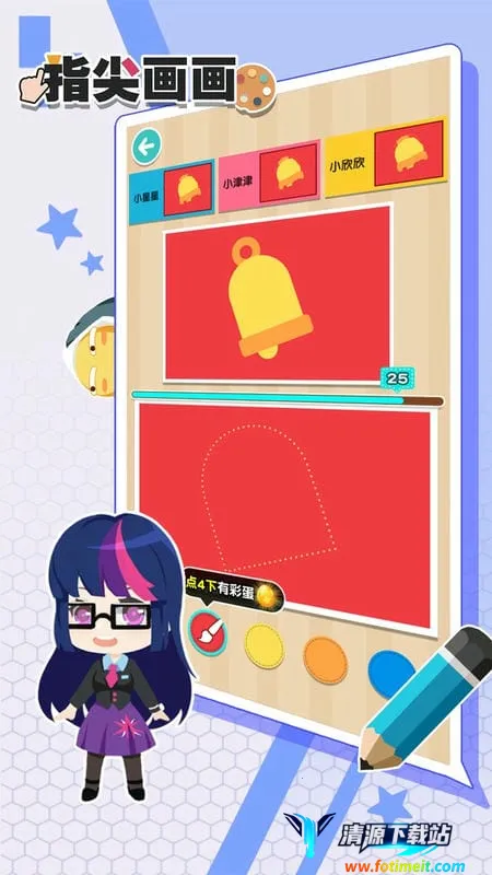 指尖画画是一款休闲绘画手游,画面卡通童趣,素材丰富。支持照片转换、专业工具套装、多样色彩等。融合课程与创作,难度渐进,有智能评分等功能,社区交流,儿童专属模块,免费且每日更新。