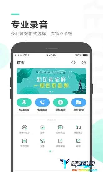 录音大师(多功能录音)由广州飞磨科技有限公司推出,是一款高品质录音软件。界面简洁,操作简单,支持立体声和单声道录音。具备录音剪辑、音频转文字、智能配音等功能,还能云端备份,优化持续进行。