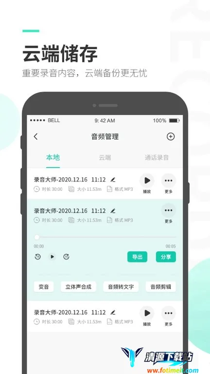 3、安全备份:提供云端安全备份功能,重要的录音内容可进行云端备份,避免数据丢失的风险。