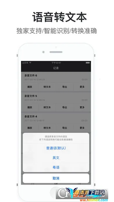 4、格式多样:支持多种音频格式,如高品质的PCM WAV、AAC m4a mp4和AMR 3GP ,用户可随意选择各种音频格式进行录音,还支持格式转换。