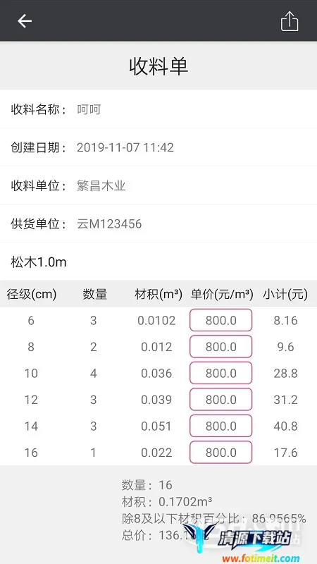 木材助手是一款超实用的手机应用,专为木材行业打造。它能帮你快速处理木材信息,查找比较木材价格、质量,轻松找到合适供应商。功能超丰富,检尺助手可在线测试计算木材横截面直径面积;添加收料能自定义计算材积;材积计算器可自行选择树种长度等信息快速计算;还有材积表方便对比木材种类大小。计算木材价格简单快捷,能自动生成收料单并一键分享。记事本可随时记录重要信息。操作简单方便,计算精准可靠。无论是木材收购、交易还是管理,它都能全方位提供支持,让你工作更高效,轻松解决木材相关问题,是木材从业者的得力助手,快来下载体验吧!