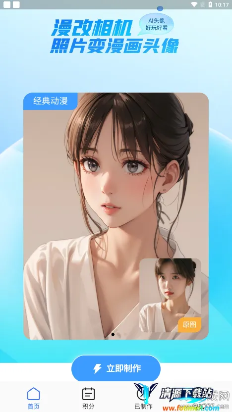 漫改相机是一款超棒的手机拍摄软件。它能把你的照片转换成漫画风格,操作简单易懂。打开软件,找到喜欢的动漫风格点击,然后可选择拍照或上传图片。选好图后能进行尺寸编辑,编辑完等软件制作完成。成功后就能下载或分享,不满意还能重新制作。