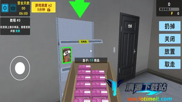 3.随后你可以进入超市,现在你的超市商品货架空空,可以在电脑上下单进货。