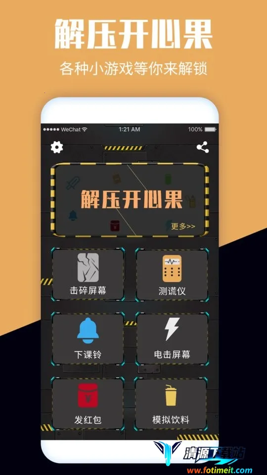 这是一款能有效解压的游戏。它模拟多种解压工具,玩法丰富,操作简单,适合各年龄段玩家。游戏中有绚丽烟花绽放、光剑挥舞、炸弹爆炸等场景,还有电击棒、打火机等多种玩法,真实模拟现实效果,让玩家身临其境。轻松的背景音乐可随意挑选,能更好地放松心情。玩家能自由选择喜欢的模式来释放压力,比如通过玩测谎仪娱乐、电击屏幕感受闪电等。多种创意模式等玩家发掘,没有上手难度。其画面精美,关卡丰富,能满足玩家不同的解压需求,帮助玩家在玩耍中释放心中压力,拥有好心情。