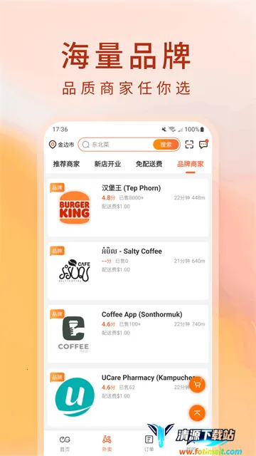3. 丰富多元选择:聚合肯德基、星巴克等品牌及本地美食,涵盖中餐、西餐、柬餐等百余种菜系,还有同城闪送、本地团购、全链路生活服务等,满足各种生活需求。