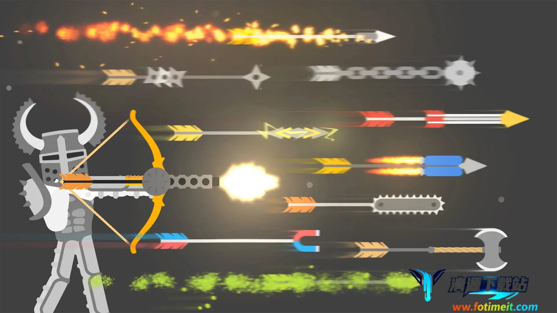 2、丰富独特箭矢:拥有种类繁多的箭矢,许多是移动市场独有的,如电锯箭、磁铁箭、鱼叉箭、机枪箭等,掌握这些独特箭矢能称霸游乐场。