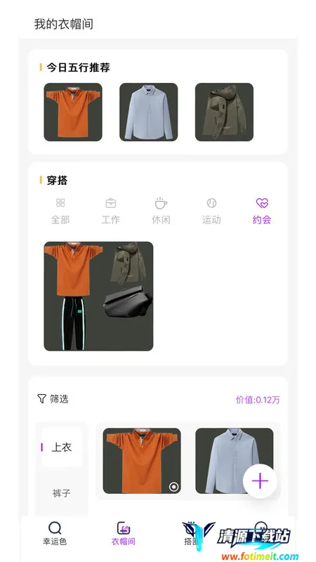 五行穿搭是一款实用的服装穿搭软件,依据周易五行原理,结合万年历,每日为用户推荐幸运色彩穿搭。有智能AI衣橱分类管理,还能根据个人生辰定制穿搭与饮食。功能多样,助你成潮流达人。