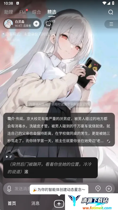 星野是一款超有趣的沉浸式虚拟扮演社交应用。它能让你和基于AI技术创造的智能体实时交流,建立情感连接。在这里,你可以自定义智能体的形象、声音和人设,把理想中的聊天伙伴带入现实。
