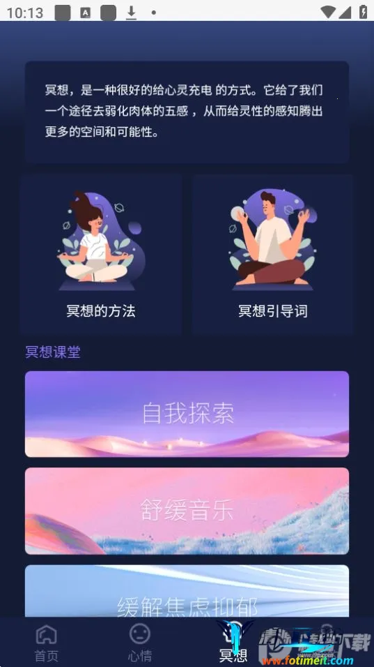 3. 特色冥想引导:具备引导用户进入冥想放松身心的功能,对压力巨大的年轻人以及焦虑患者大有裨益,能有效缓解焦虑压抑。