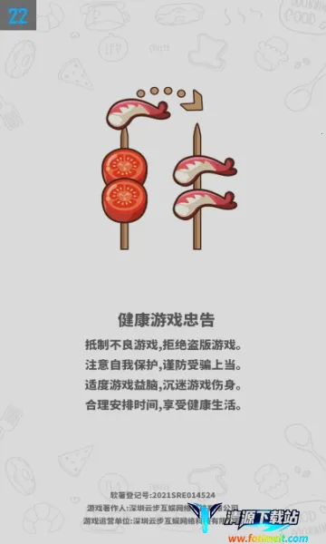 这款游戏玩法简单易上手,单指操作顺手,适合利用零散时间随时畅玩。关卡海量且从易到难,没有时间限制,被卡住也能随时重来,毫无压力。游戏以将同类食材移到同一竹签为胜利条件,规则易懂。在闯关过程中,需注意只有相同颜色食材能移动堆叠,越往后食材类型越丰富,增加了趣味性。通关后能获金币购买道具,还有多款主题和皮肤可免费解锁,带来新颖体验。整体而言,它是一款能让人放松身心、享受乐趣,兼具休闲与益智的优质游戏,值得一玩。