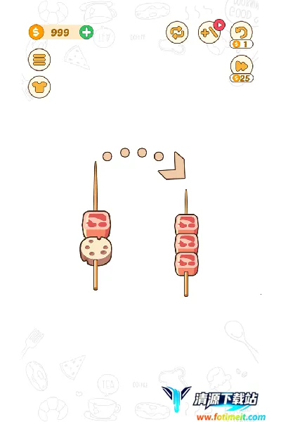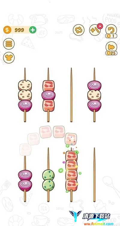 操作简便,轻松上手:单指操作顺手,只需点击竹签就能移动食材,规则简单易懂,无需复杂学习过程,随时都能轻松开启游戏之旅。