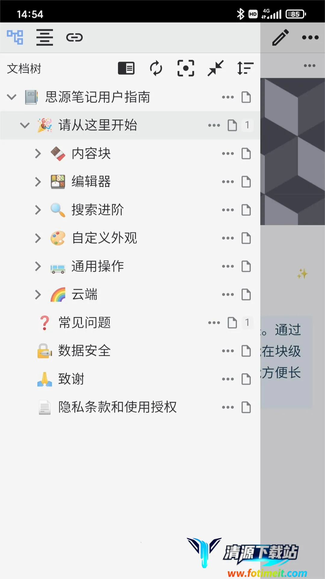 思源笔记是一款出色的笔记与知识整理工具。它以内容块为核心理念,将长文拆分成可复用、引用和重组的块级内容,方便管理知识。应用内提供清晰的文档树与笔记本结构,配合编辑器、搜索与同步等能力,适合多种场景的长期沉淀。