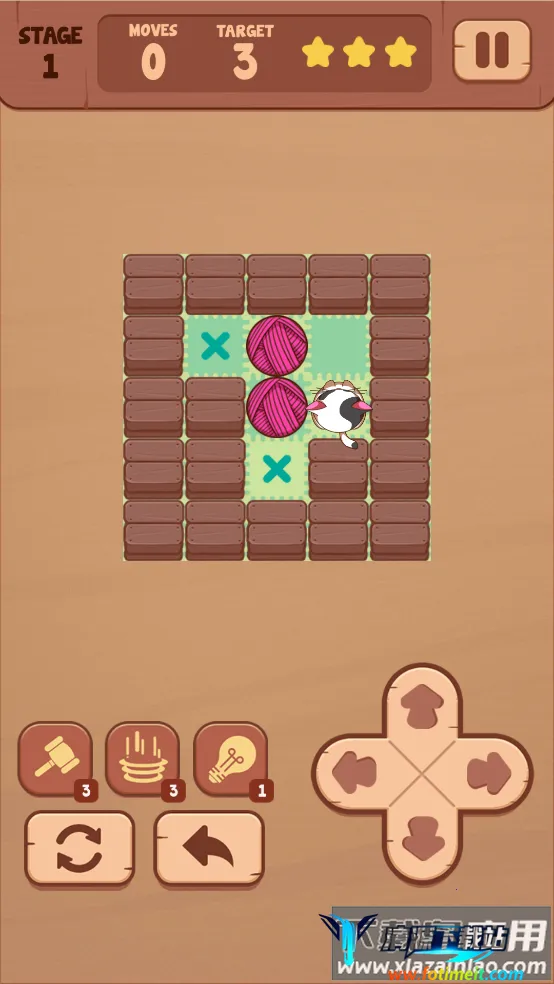 游戏中,玩家操控可爱小猫推动毛线球到目标位置。整体画风清新,规则简单,适合闲暇放松。玩法上,通过方向键或滑动控制小猫移动,每次只能移动一格,遇到墙壁需绕行。目标是将所有毛线球推到指定标记点。