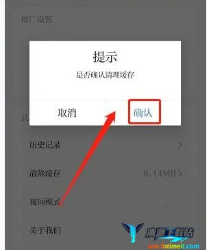 进入是否确认清理缓存提示界面,点击【确认】。