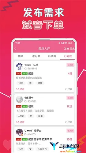 4、社交体验良好:搭建了音圈社交板块,可发布变声作品动态、关注心仪声优,设有声优排行榜;还设有需求大厅形成配音交易闭环,方便爱好者交流互动与配音交易。