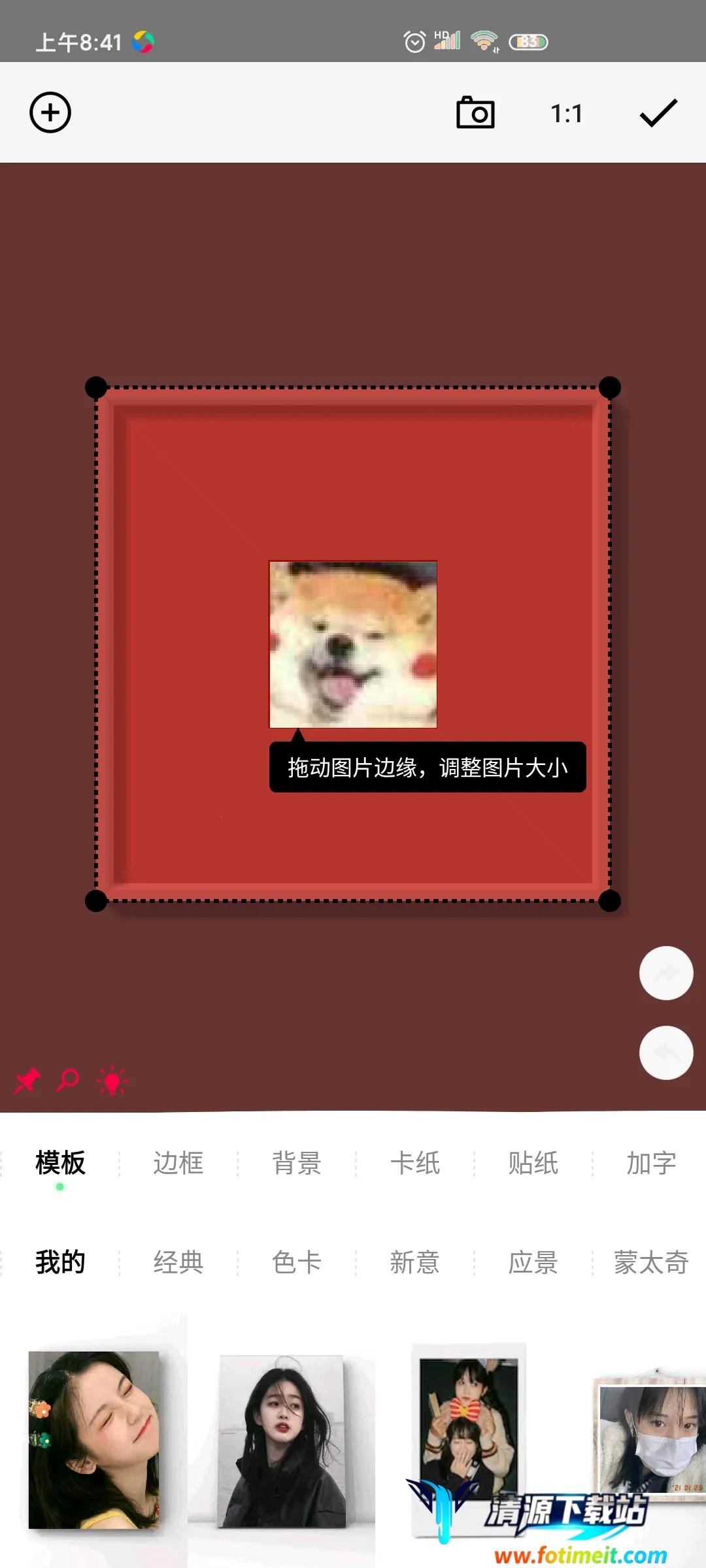 如果你想给照片加上好看的相框,让照片更具个性和艺术感,那一幅相框APP绝对是你的不二之选!它能帮你轻松解决照片单调的问题。这款软件功能超丰富,有多种风格的相框模板,像木纹、简约、无框、卷轴、油画、欧式、多彩等,满足各种审美需求。背景编辑也很棒,能添加纯色、渐变、纹理、套装、场景等多种背景。还能加文字贴纸,让照片更有趣。智能拼图、分图、卡点功能也很实用,能制作出各种创意照片和动态小视频。自定义下载素材也很方便。操作简单,界面简洁直观,新手也能快速上手。有了它,你可以随时选择喜欢的照片在线编辑,轻松调整相框、背景等,还能保存或分享作品,让你的照片瞬间与众不同,快来下载体验吧!