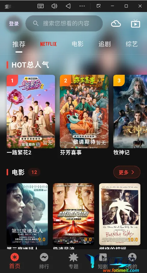 它功能强大,能解决很多观影问题。有丰富影视资源,电影、电视、综艺、动画等应有尽有,轻松找到喜欢的内容。播放窗口无广告,观看体验超清爽,还完全免费。提供多样在线播放源,卡顿可换备份路线。支持上下集快捷切换和列表快速选集,提升观剧效率。还能与投屏设备连接,把影片投到电视或投影仪,享受大屏观影。也能一键缓存视频,随时随地离线追剧。