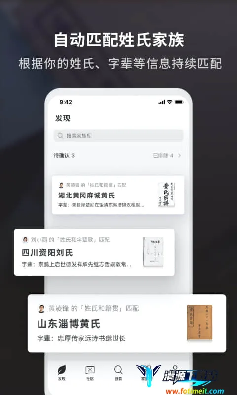 3. 能自动匹配姓氏家族,根据你的信息持续匹配,提供祖源服务,还可保存或自建姓氏家族随时查看,更方便与家人分享。