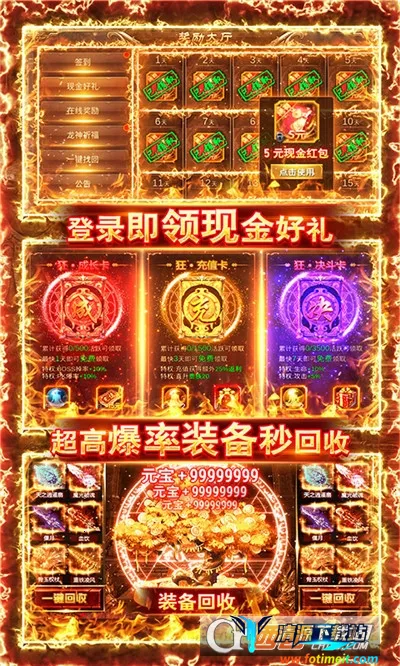 4. 福利很丰厚:上线即送V12,能领取所有vip礼包,还有多种游戏福利,让玩家享受优质的传奇魔幻游戏乐趣。