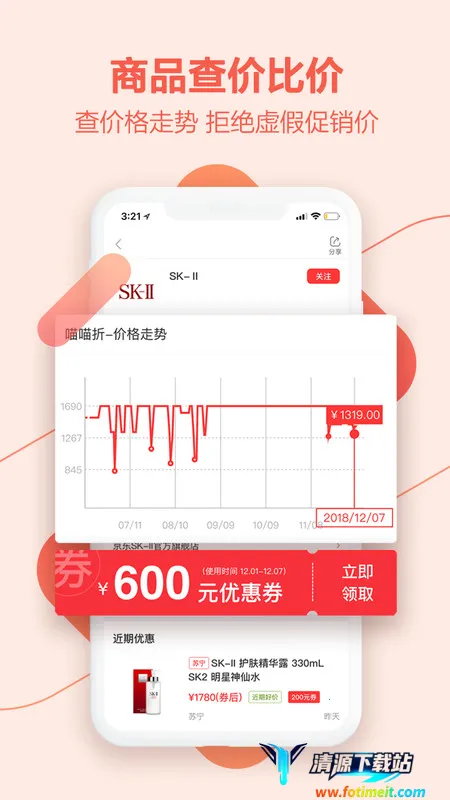 2. 历史价格轻松查:支持主流电商网站商品的历史价格查询,使用喵喵折可查询商品历史售卖的价格信息以及优惠活动,帮助识别虚假促销,避免买到高价商品。