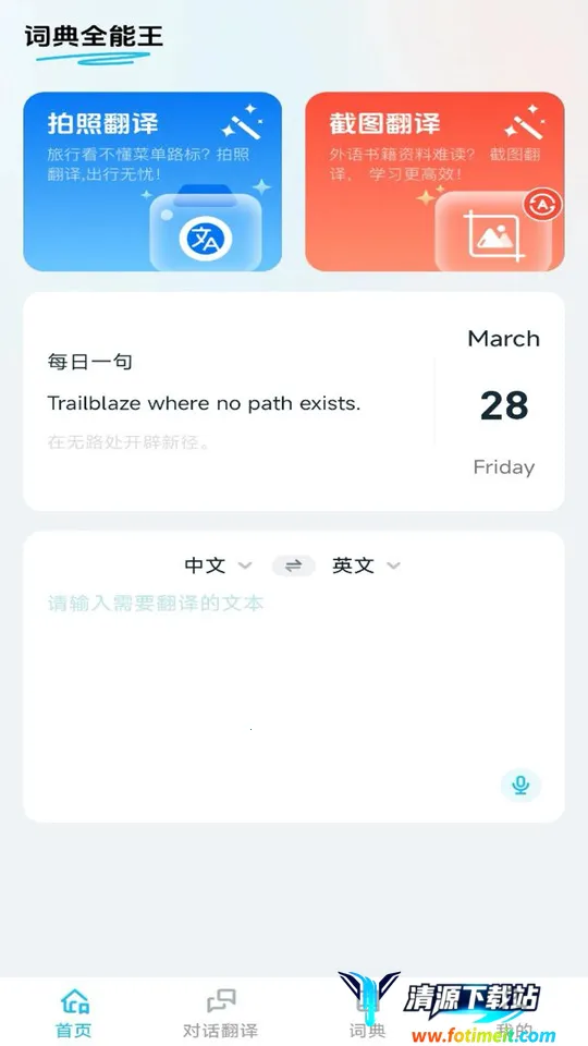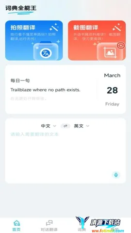 词典全能王是为语言学习者打造的多功能工具,实时词典查询准确快速,有智能翻译引擎和语音输入功能。具备多种学习模式,还有收藏夹、分层词库等实用功能。支持跨平台同步,能个性化设置。