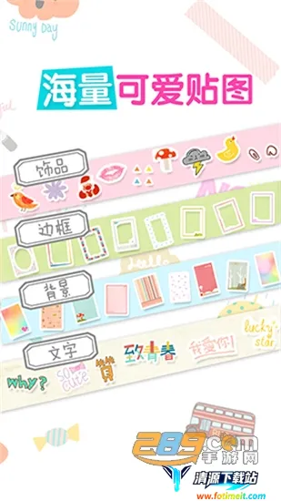 1、贴纸资源丰富且免费:拥有各种类型风格的精致贴纸,系统还会每日更新,用户能轻松设置并随心所欲添加到图片中,免费畅享海量贴纸素材。