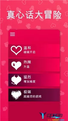 Couplegame全解锁版是一款超有趣的互动小游戏,以问答为主题,带来真心话大冒险体验。它适合任何年龄段玩家,玩法简单易上手,无限制条件。游戏模式众多,有冒险挑战、说实话模式、冒险模式等,还支持Soft、Hot、Hard、Extreme四种模式,满足不同情侣需求。玩家能自定义真心话和大冒险,还可使用骰子、大转盘等多种小工具。游戏有中文版本,无语言问题,能激发玩家挑战兴趣。其挑战丰富多彩,需双方共同努力完成,能增进情侣间好感度和亲密度,让玩家享受趣味欢快的休闲时光。