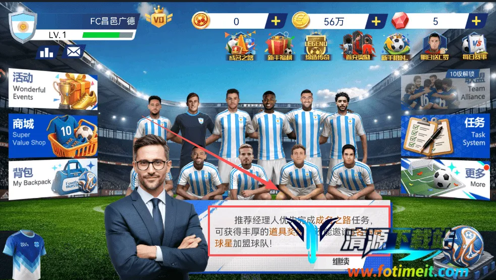 1、跟着指引完成能获得大量道具,还能解锁五位传奇球星加入你的队伍,这对前期组建强力阵容非常关键。