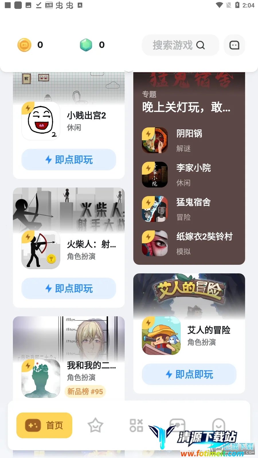 3. 海量游戏随意选,集合了海量游戏产品资源,不仅数量众多,更涵盖各类游戏类型,全面满足玩家喜好。玩家可从不同的游戏分类与榜单中,挑选自己感兴趣的游戏作品,超人气手游一网打尽。