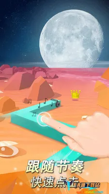 3、操作简单:操作直观,简单易上手,不管是老人还是小孩都能轻松体验。玩家仅需点击屏幕进行 90 度拐弯,避开障碍物,配合音乐节奏闯关。