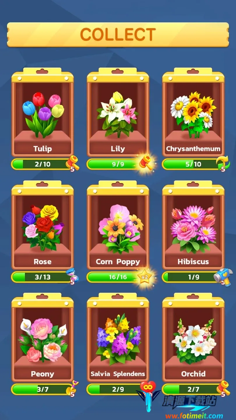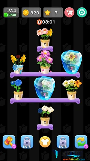 这款游戏凭借其独特魅力,在全球范围内收获超百万次下载。其画面精致,关卡设计富有挑战,视听效果舒缓,营造出宁静愉悦的氛围。从基础花束到复杂插花,每个关卡都模拟真实花艺场景,玩家在消除中仿佛置身花艺创作。核心玩法是整理花束,按颜色分类移入对应花瓶,匹配三朵同色花可合成高级作品。数百个关卡难度循序渐进,道具系统丰富,简单操作也有深度策略乐趣。花卉设计精美,关卡机制创新,动态难度调节贴心,单指滑动易上手。玩家观察花束分布规划路径,利用连锁反应,合理使用道具完成目标。还融入花艺知识,成就系统完善,每日挑战有趣,是放松减压与脑力训练的理想之选。