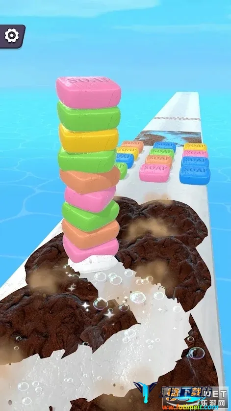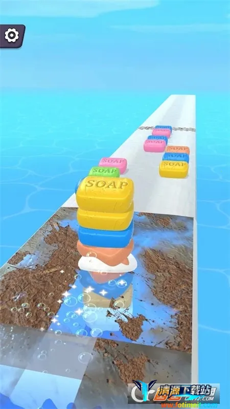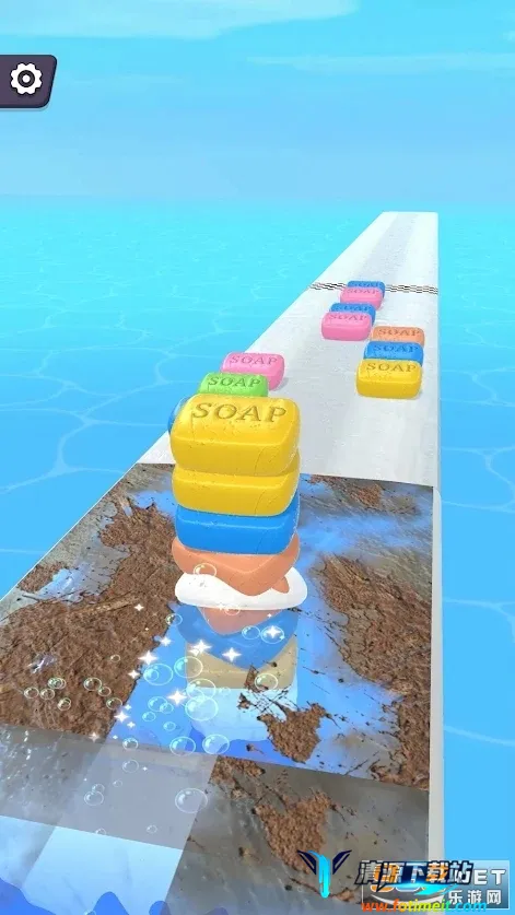 3. 独特的肥皂堆叠系统:赛道沿途收集不同颜色肥皂块自动堆叠成塔,堆叠过程有动态平衡机制,超过十五块会明显晃动,增加游戏趣味性和挑战性。