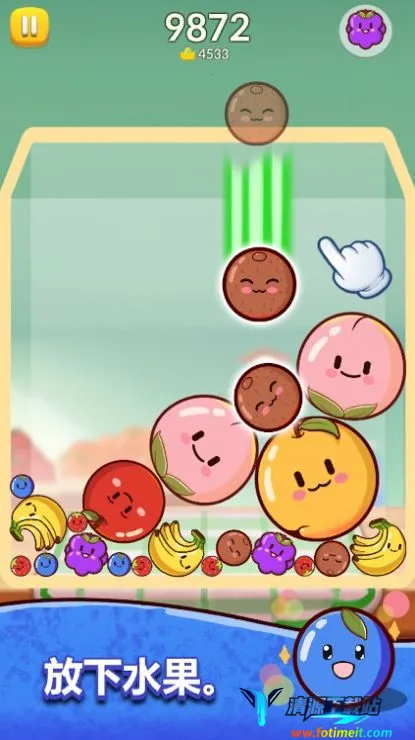 2、合成玩法创新: 玩家只需简单将相同水果合并,就能创造出更大水果,尽情体验合成乐趣。