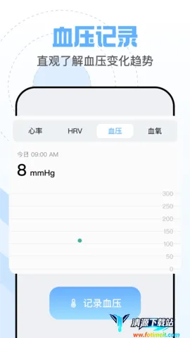 2. 健康守护:具备异常心率自动提醒功能,手动录入血氧血压数据后自动生成变化曲线,设置安全阈值,数值异常即时推送预警通知,全方位守护心血管健康。