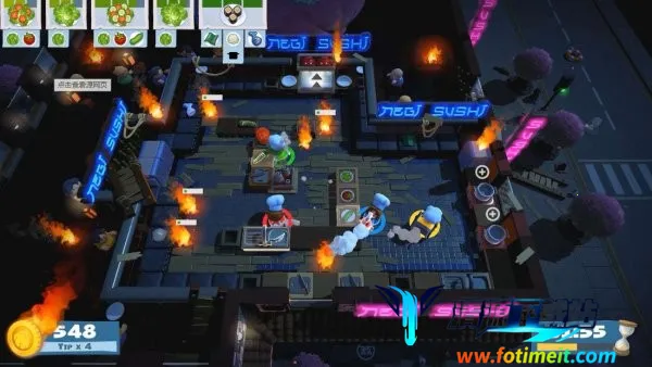 《胡闹厨房2》是移植自端游的多人联机模拟烹饪游戏,用unity引擎打造。支持1-4人,有竞技玩法与趣味画风。含大量场景,还有全新内容。游戏有多种特色玩法与亮点,还有隐藏关卡及攻略技巧助玩家体验烹饪乐趣。